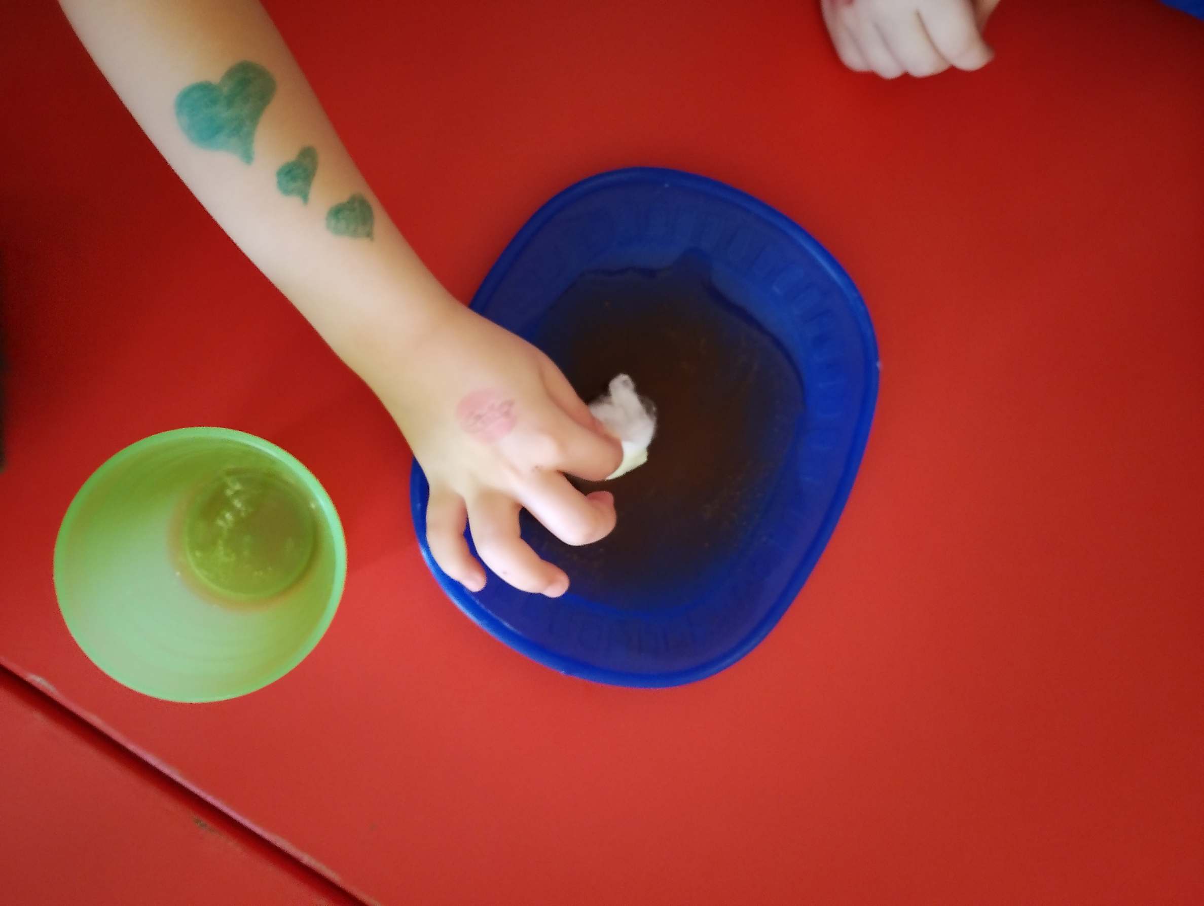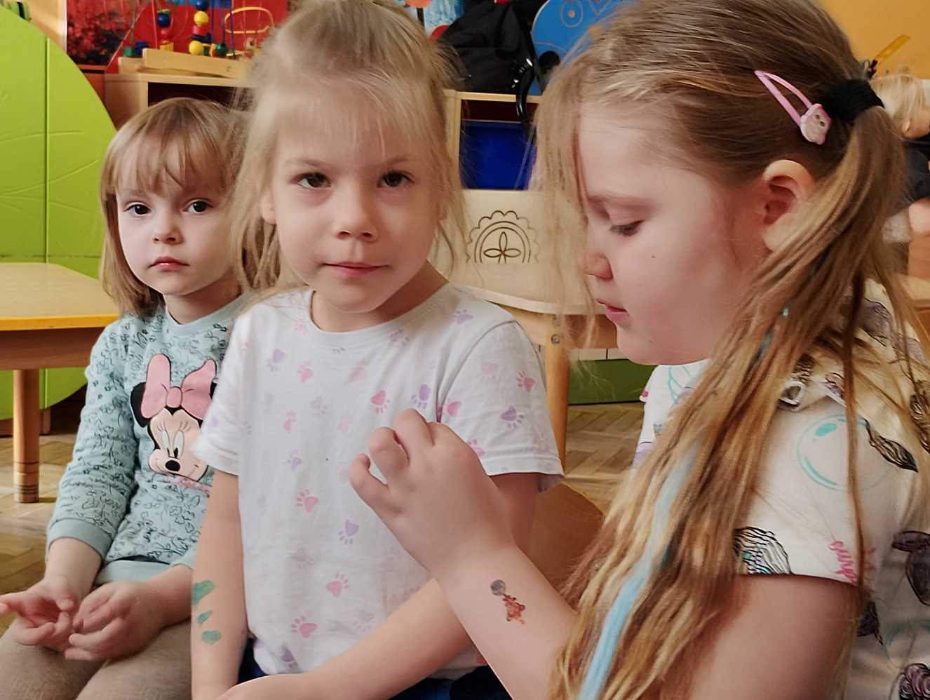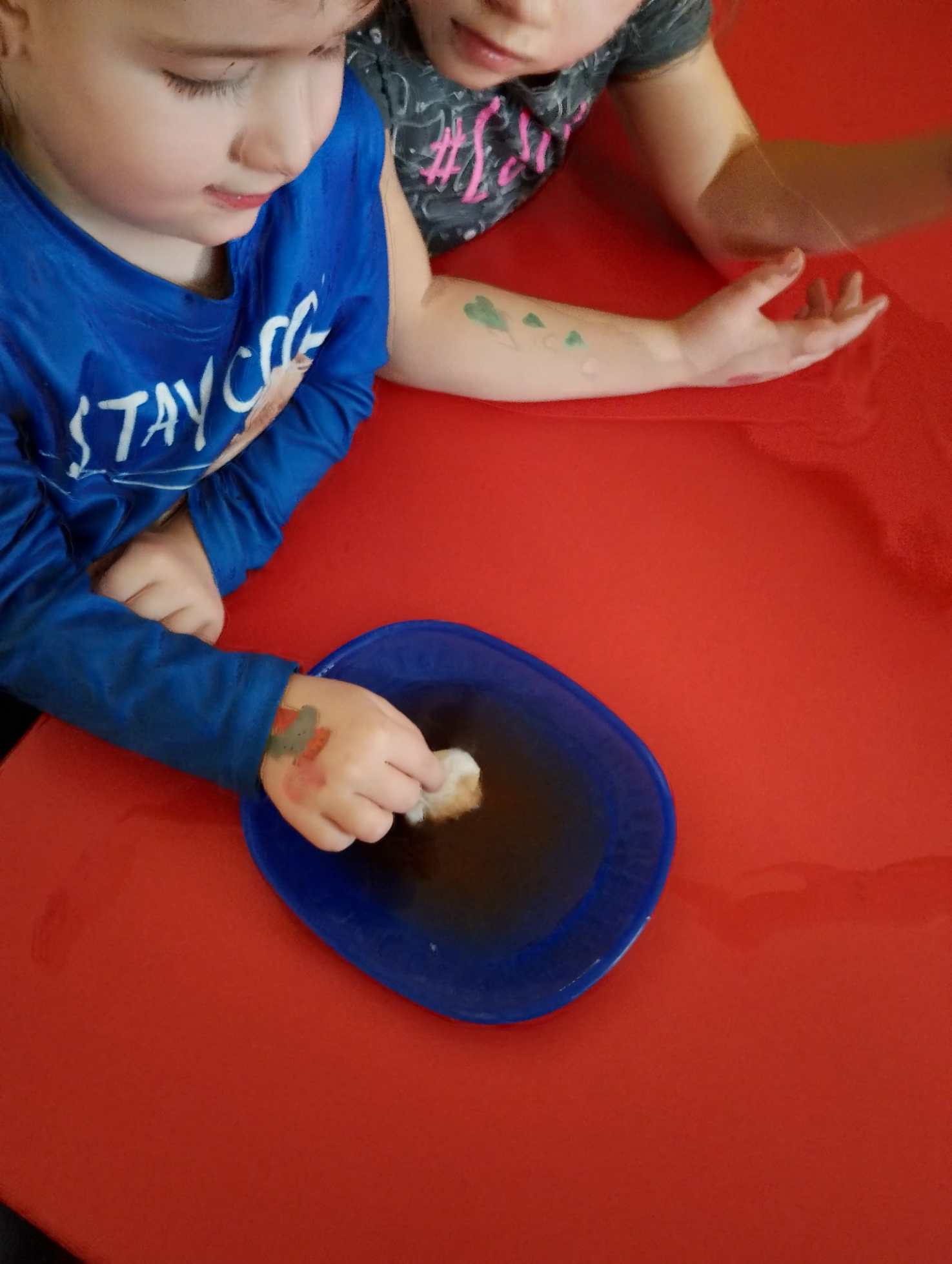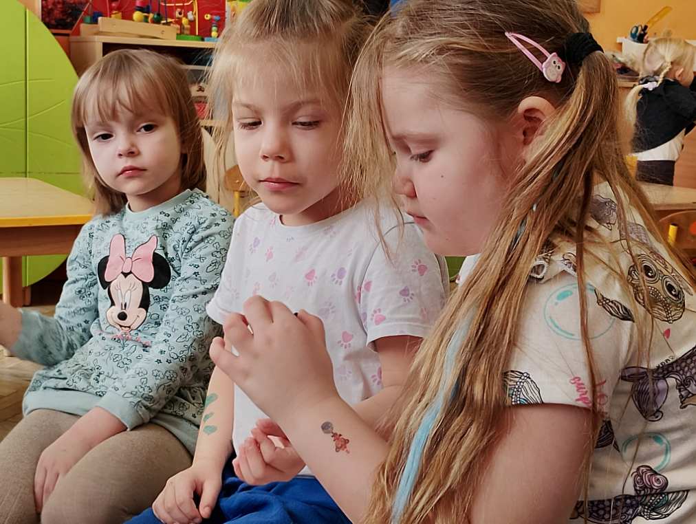 W tym tygodniu dzieci w grupie średniaków poznawały przedmioty 5 zmysłami (wzrok, słuch, smak, dotyk, węch). Bawiły się w poznawanie przedmiotów tylko za pomocą dotyku, opisując także właściwości rzeczy (miękki, twardy, szorstki, gładki). Ciocia Agnieszka przyniosła też przyprawy (cynamon, pieprz, kawa, sól) oprócz poznania ich za pomocą zmysłów, dzieci oglądały też eksperymenty przy użyciu tych przypraw. Dzieci by utrwalić temat wykonały prace plastyczną korzystając z pomponów, gąbki, bibuły oraz kawy i cynamonu.