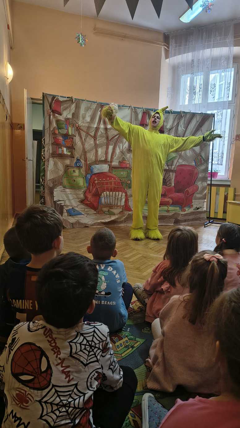 Dnia 20 lutego odwiedził przedszkole teatr „Blaszany Bębenek” dzieci mogły obejrzeć przedstawienie świąteczne pt. "Grinch", a później odpowiadać na zagadki prowadzących.